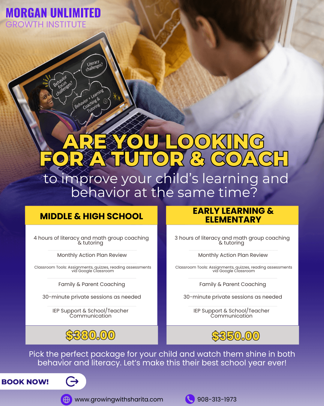With Sharita's unique approach, kids with behavior and focus challenges learn to make better choices, take responsibility for their actions, and break free from negative behavior patterns—all while excelling academically. Let's work together to create a brighter future for your child!