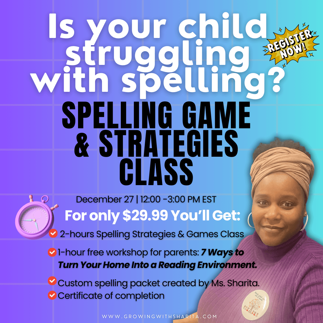 At Growing with Sharita, we see this every day. Bright, capable kids who want to do well—but feel discouraged when spelling just won’t click.